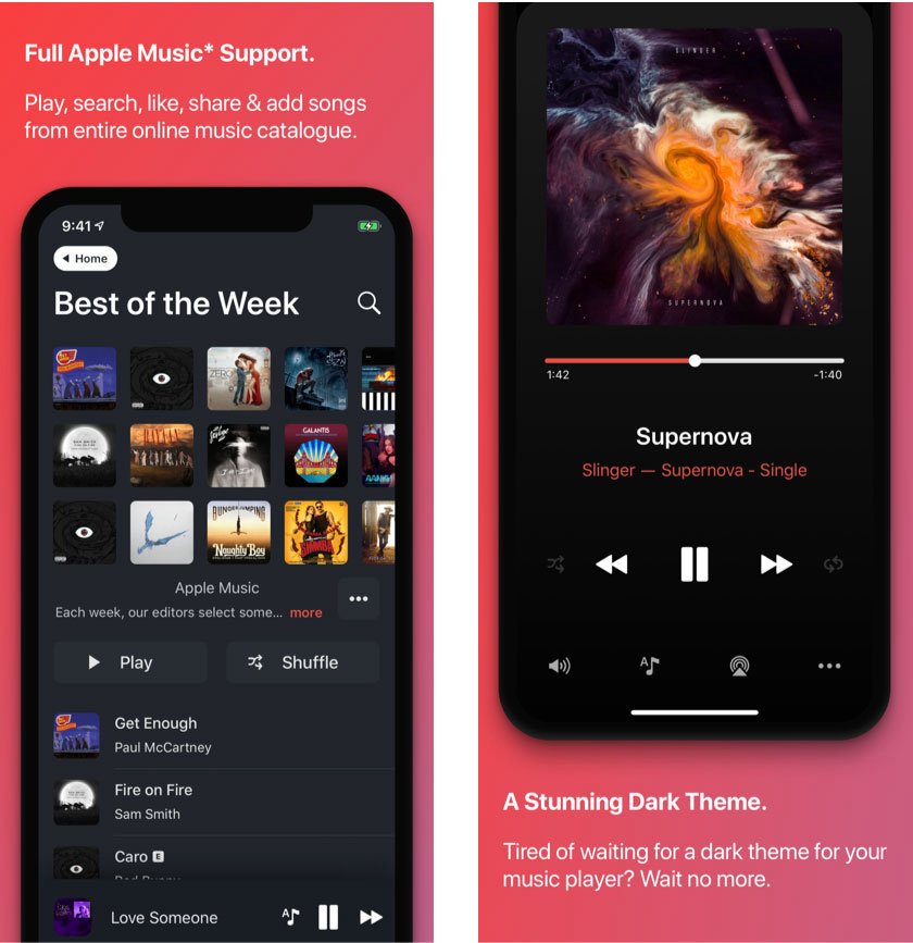 Play, search, like, share and add songs from across the entire Apple Music catalogue.