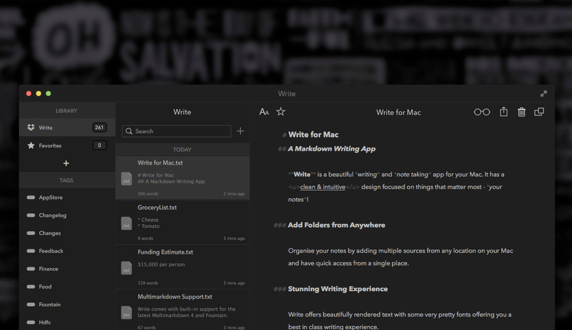 You might be a writer, student, blogger or just a simple person who likes to keep things in order and make life productive, you’ll love Write! No matter where you store your notes, Write will organise and present them beautifully.